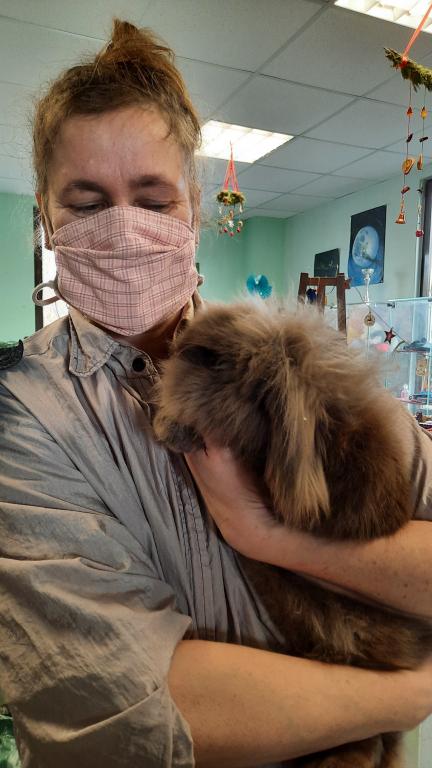 Après la visite hier d un lutin de Noël , Aujourd’hui c'est le lapin de Pâques qui a envoyé un de ces émissaire au salon Cathy kouaf